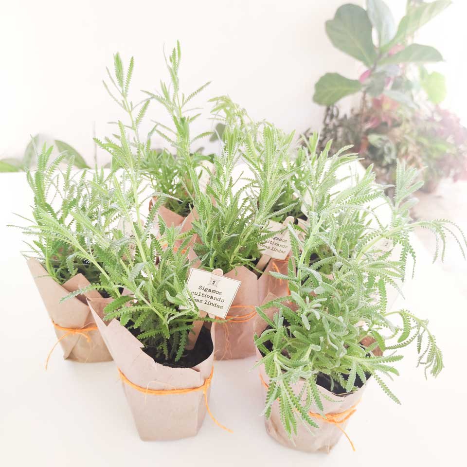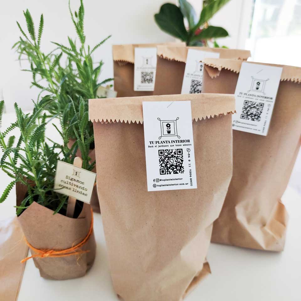 12 plantines florales en maceta de cultivo n°12 envueltas individualmente en papel craft para regalar con mensaje alusivo a la fecha que vos elijas. ej: «Sigamos cultivando cosas lindas» (día del amigo)